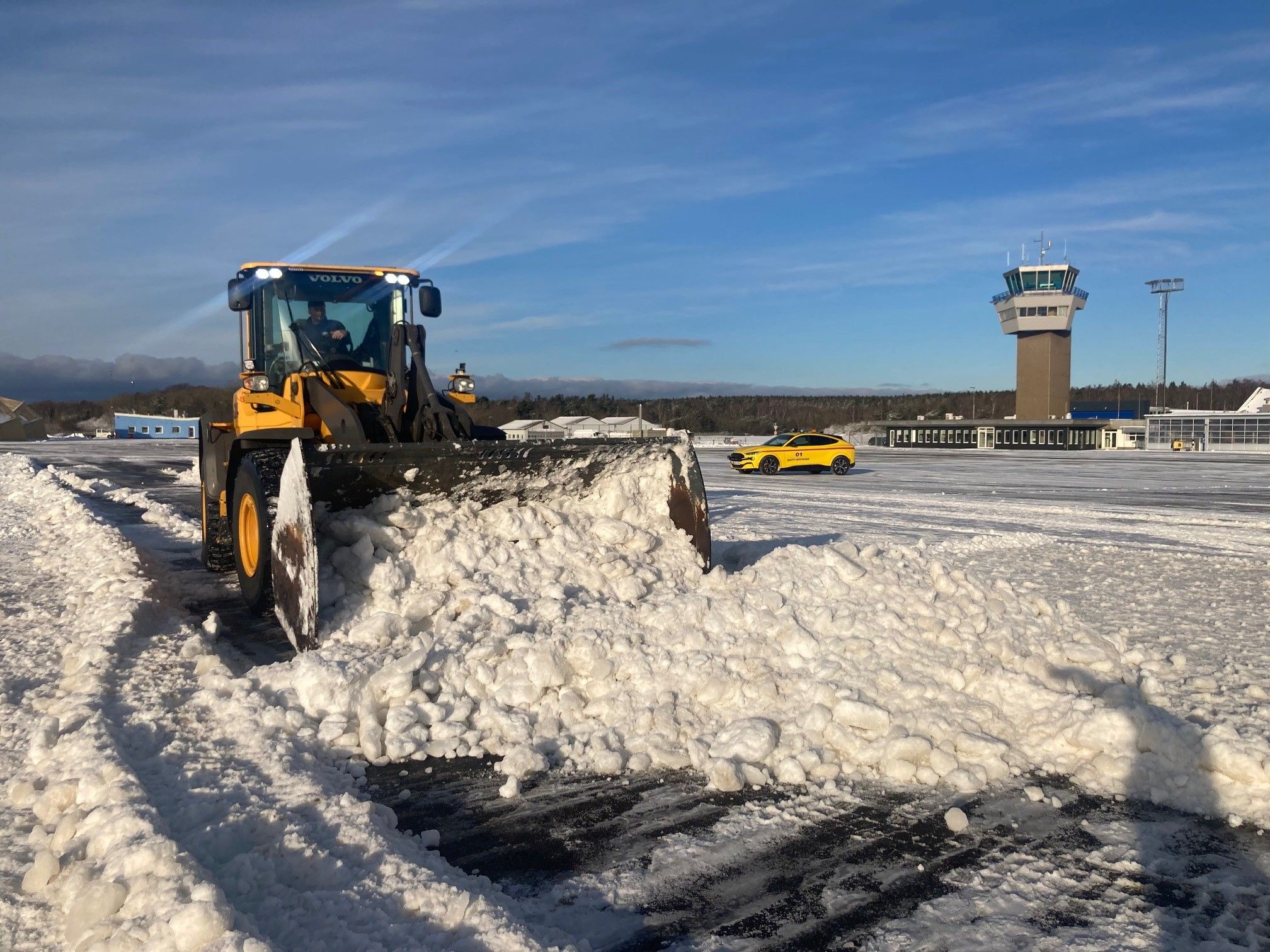 Torsdag d.21 blev Bornholms Lufthavn ramt af vinterens første snefald, men takket være vores topklare medarbejdere og effektive maskiner blev sneen hurtigt håndteret. Et tykt lag sne blev fjernet fra flyet inden afgang til København, og tre store snerydningskøretøjer samt en sneslynge sikrede, at landingsbanen igen blev klar til brug.